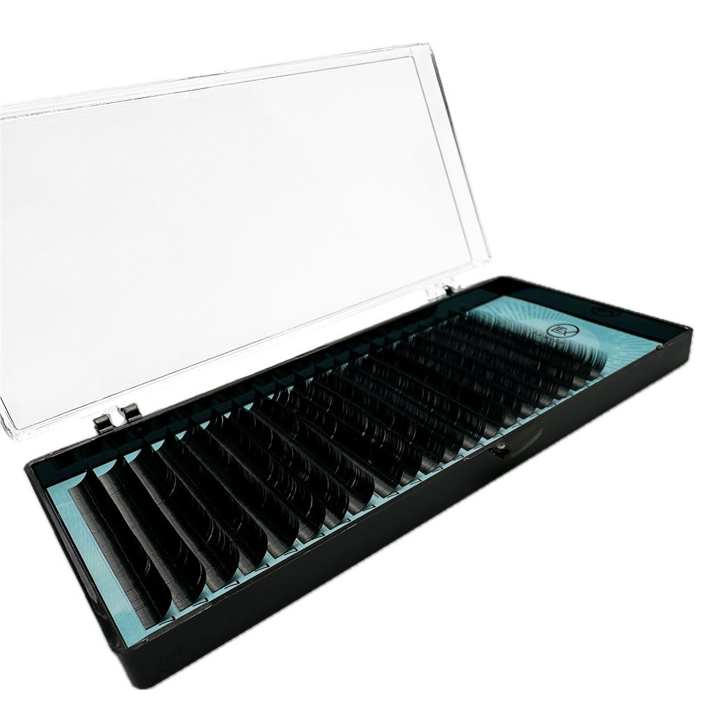 Вугільні чорні, супер тонкі та м'які вії Lex, підходять для будь-якого виду нарощування від класики до мега обсягів. Мають унікальне волокно, що дозволяє легко формувати пучки різних розмірів. Не втрачають зовнішній вигляд навіть через 2 місяці носіння.
